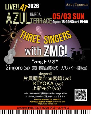 今回は、速水佐保・西尾寛之・山野伸一のトリオとともにお送りする本格派JAZZ Vocal。